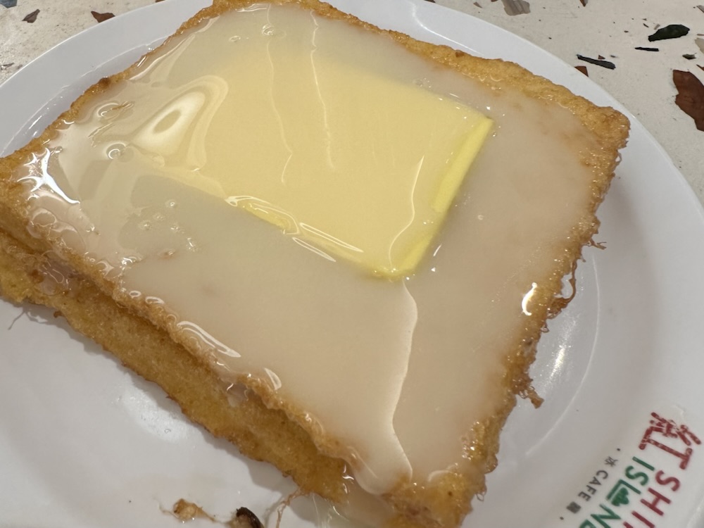 • My comments: Apparently a popular spot among locals for traditional Hong Kong comfort food — I didn’t see any foreigners at all, which made me feel like a true Hongkonger, haha! We ordered the French toast (as always), Gong Zai Min (公仔麵, aka Nissin noodles), and their famous Bo Luo Yiu (菠蘿油) with butter. Food was typical cha chaan teng style — nothing mind-blowing, but everything was tasty and satisfying. ⭐️⭐️⭐️⭐️