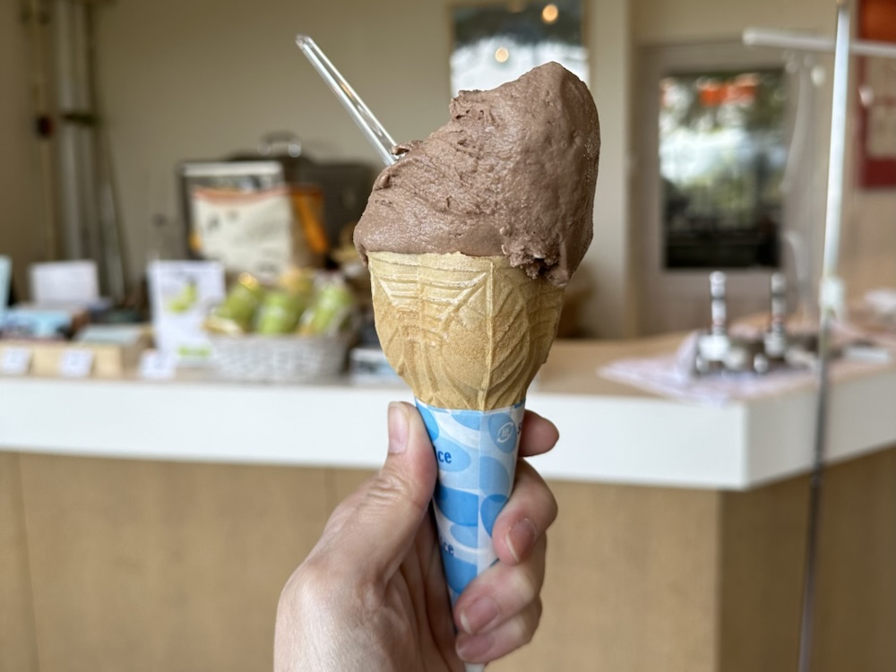 • My comments: Yamakawa Bokujyo Milk Plant is an ice cream shop that makes its own ice cream using fresh milk from cows they raise and milk onsite every day! They offer a wide variety of flavours — and of course, I had to go with chocolate!