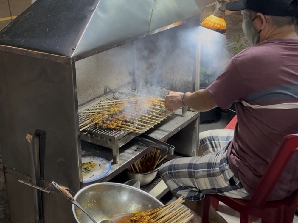 — Viet satay; Set of 5 skewers VND60,000 (S$3); Larue Beer VND20,000 (S$1)